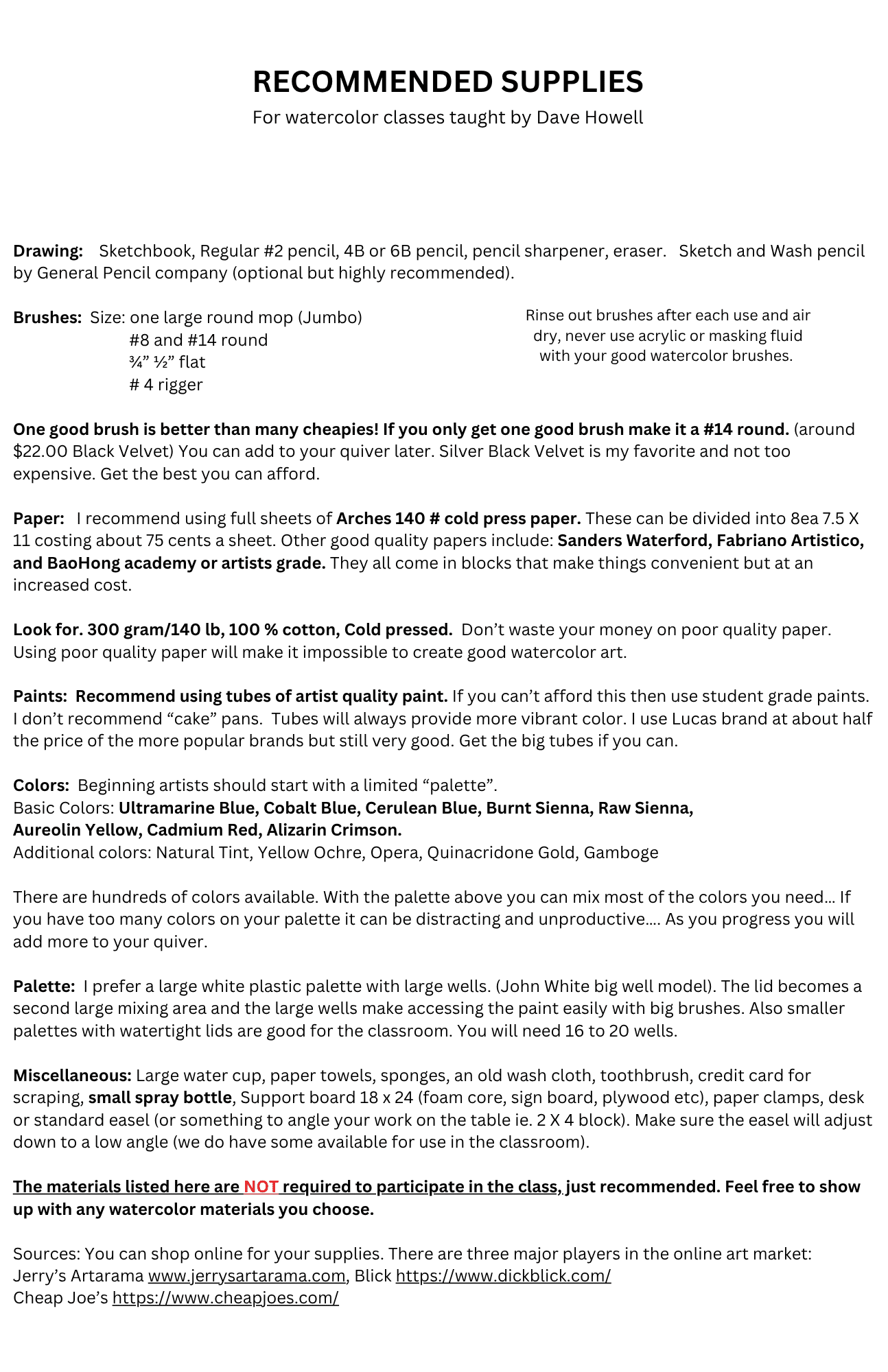 This class is ideal for artists with some watercolor experience who want to loosen up and paint with greater freedom and creativity. Join fellow artists as we explore how to capture the essence of a subject rather than staying “inside the lines.” Dave will share his artistic philosophy, techniques, and design insights to help you paint with confidence and expression. Projects will include landscapes, seascapes, and cityscapes, focusing on interpreting nature as you see it—not simply copying it. Student provides art materials and supplies. Supply kit available for purchase for $140. Supply List